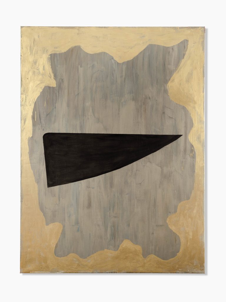 The Warp 2, 2024, gold bronze, oil on canvas, 200 × 150 cm