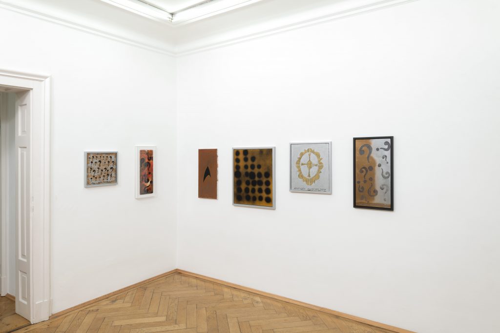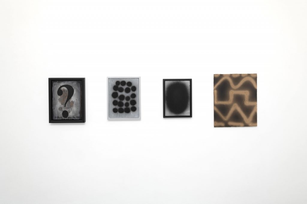 Wie in meiner letzten Ausstellung Companions (Oscaar Mouligne, Kyoto, 2025) bilden auch diesmal Patterns wie Wellen, Partikel, Quantenformationen, Verwerfungen, Zusammenschlüsse, Verklumpungen und Black Holes, oft mit gesprühter Farbe auf gespachtelten Bildflächen aufgetragen, eine zusammenhängende Struktur.