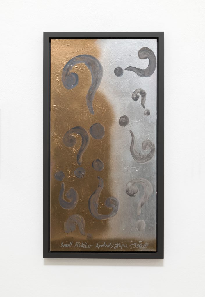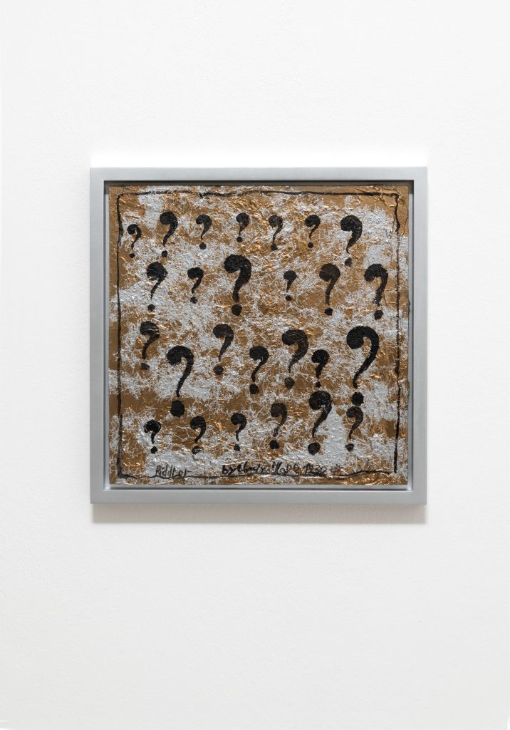 Riddler, 2021, acrylic, oil, lacquer and gold bronze on canvas, 40 x 30 cm / 46 × 36 cm (framed)