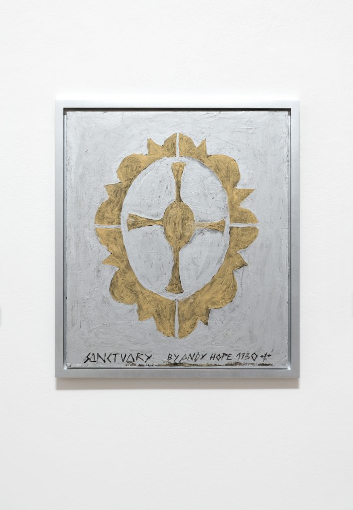 Sanctuary, 2025, acrylic, aluminium paint on canvas, 46 × 40 cm / 50 × 44 cm (framed)