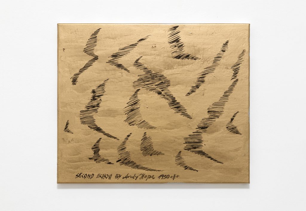 Second Echo III, 2025, acrylic, gold bronze, oil on canvas, 50 × 60 cm