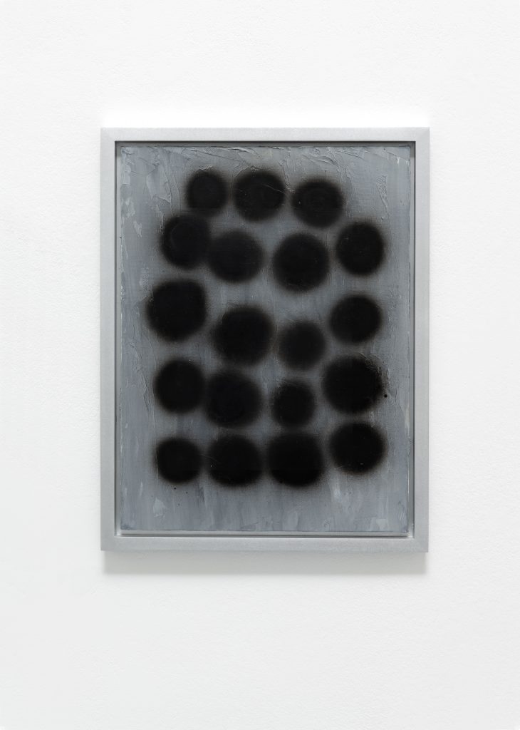 Untitled Sequence 5, 2024, oil, acrylic, spray paint on canvas board, 40,5 × 30 cm / 44,5 × 34,5 cm (framed)