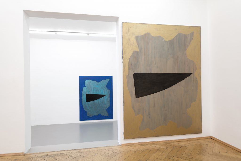 Forming the gravitational center of the exhibition DELIRIOUS ESCAPE are two large vertical-format works titled The Warp (2018/2024). Seen in profile, their black, avant-garde, abstract forms, with an almost constructivist quality, resemble spaceships of a Type 3 civilization1.