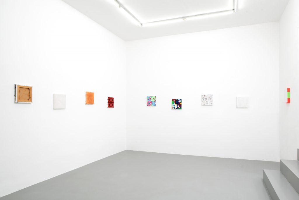 Die Bilder, die Heimo Zobernig für seine Ausstellung in der Galerie Christine Mayer 2021 ausgewählt hat, lassen auch die 1998 vorgeschlagenen Begriffe neu überdenken. Die Leinwände können zweifellos Projektionsflächen bilden für die Betrachtenden: Auf einem der Bilder steht „LOOK“, in anderen finden Interferenzfarben Verwendung, die sich ändern, wenn jemand vorbeigeht. Es stellt sich auch die Frage, ob und wie die Bilder abstrakt sind: Einige enthalten Buchstaben, eines lässt an eine Uhr oder an einen Kompass denken. Die durchgehend 30 x 30 cm großen Arbeiten stammen aus verschiedenen Jahren und können zusammen gelesen werden als kleines Archiv: Die früheste mit der Jahreszahl 1988 besteht aus zwei Leinwänden auf Rahmen, deren Vorderseiten durch Farbe zusammengehalten werden, so dass nur sichtbar bleibt, was normalerweise hinten ist. In den Bildern von 2021 dagegen ist schon sichtbar, was vorne drauf ist: „PAINTING NATURE“, „INFRASTRUCTURE NATURE“. Ich denke an einen Satz, den Zobernig auf Sexualität bezieht: „Es geht zum Beispiel um Verdecken oder Sichtbarmachen.“ Und schließlich handelt es sich ganz sicher um eine Aktualisierung, wenn die Ausstellung genau 20 Jahre nach dem ersten Auftritt des Künstlers in der Galerie Christine Mayer stattfindet.